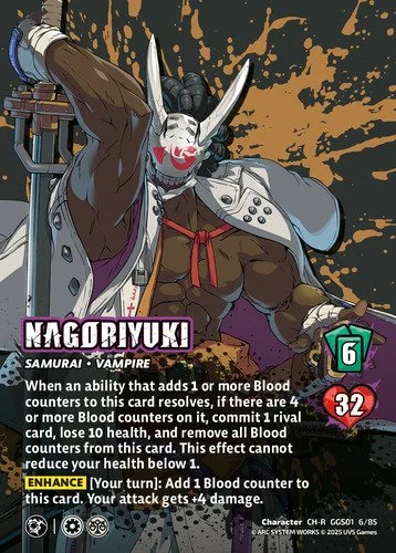 Ever hear of the phrase “The only life point that matters is the last one?”. This character embodies that mentality. 10 life doesn’t matter when you’re shutting off their Moment of Normalcy and stacking +4 damage onto everything. What he lacks in any inherent Velocity he makes up for in sheer damage output, and having access to arguably some of the best Tension attacks printed (Kamuriyuki, Dust Attack, and Bloodsucking Universe) means he also plays very nicely with Echo abilities (Thunder Spear Barrage is 20 by itself for instance). This is the character I wouldn’t be surprised to be the most wrong about in some capacity. +4 damage is basically 3/4s of a 4 difficulty attack and he adds that for free but -10 life also means you might just get lmao’d if you can’t end the opponent that turn. This push and pull between big damage and big life loss (some might say….”the Tension”) means this will probably be the character I keep an eye on the most in the nascent stages of the Guilty Gear metagame. Who needs speed when you can Psychic Spirit Glass/Farewell to Friends someone out of the game?
